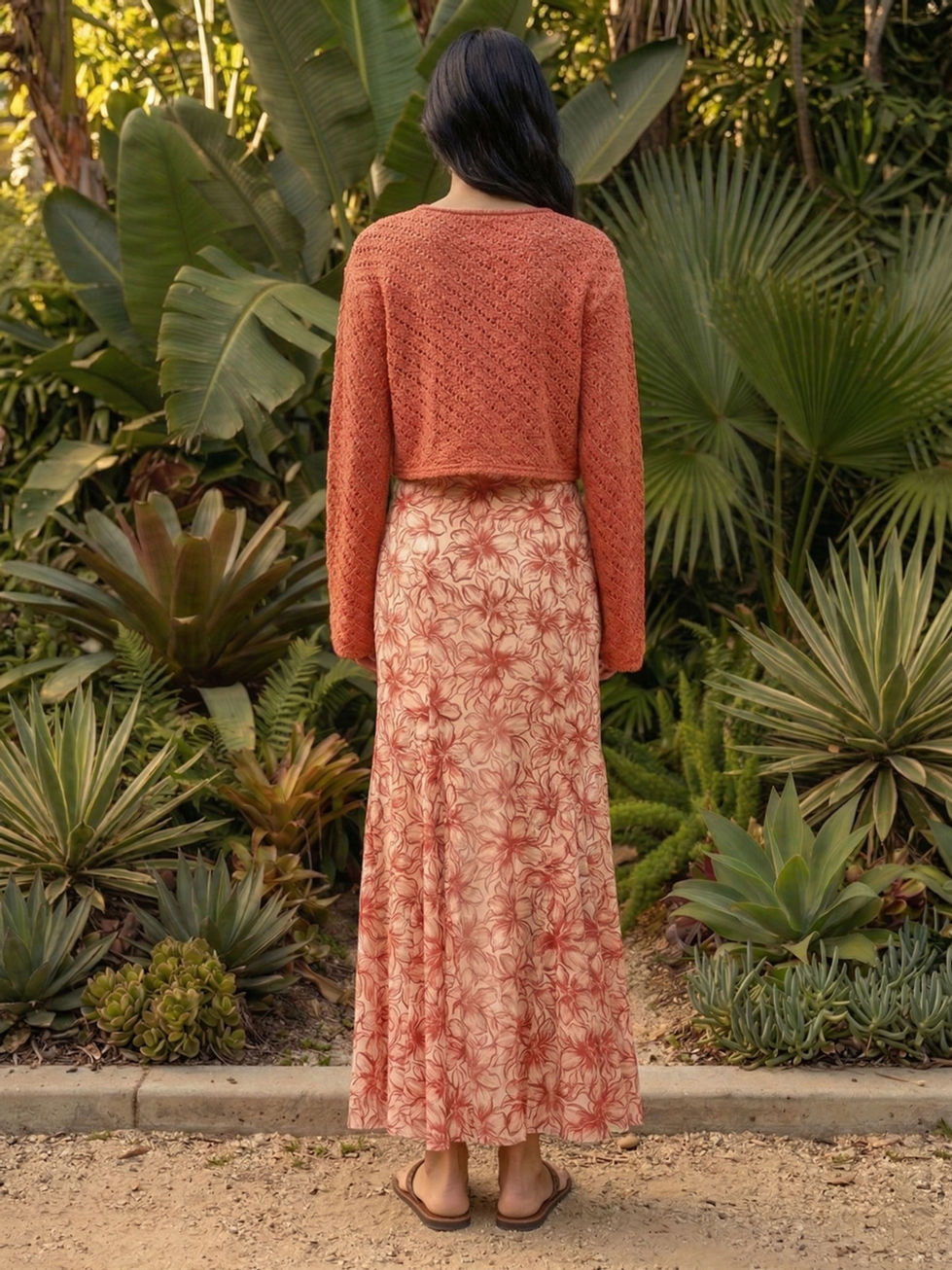 The Crimson Garden Modest Skirt is a stunning addition to our collection of modest skirts for women who appreciate artful design and graceful silhouettes. This floral mesh maxi skirt features a romantic hand-drawn botanical print in rich red tones, creating depth and visual interest that elevates any outfit. The mermaid silhouette is expertly tailored with godet pleats at the hem, allowing for beautiful movement and an elegant flare. Perfect for Sunday services, garden parties, or special occasions, this ankle-length modest long skirt offers the ideal balance of contemporary style and timeless femininity. The partial lining ensures comfortable coverage while maintaining the airy quality of the mesh fabric.