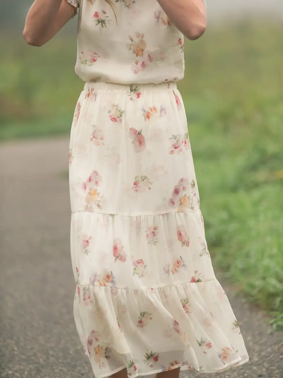 The Meadow Mist Floral Maxi Skirt is an effortless addition to your collection of modest skirts for church, combining ethereal beauty with everyday wearability. Crafted from 100% premium cotton gauze, this cream floral maxi features a graceful tiered silhouette that moves beautifully while maintaining full coverage. The comfortable elastic waistband and breathable, lightweight fabric make it perfect for spring and summer worship services or any occasion that calls for feminine elegance. Whether paired with a chambray top or simple tee, the Meadow Mist delivers timeless modest style that honors your values while keeping you cool and comfortable all day long.